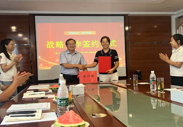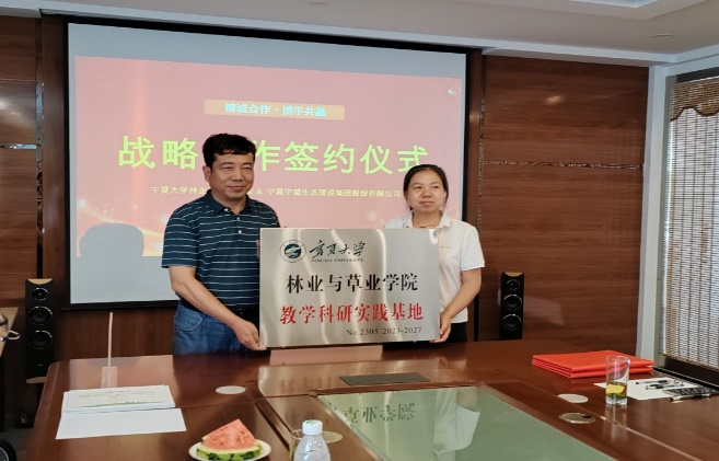 为加快校企深度合作与交流,双方签署了战略合作协议,同时将宁苗生态研究院试验生产基地作为公司教学科研实践基地,并举行了授牌仪式。