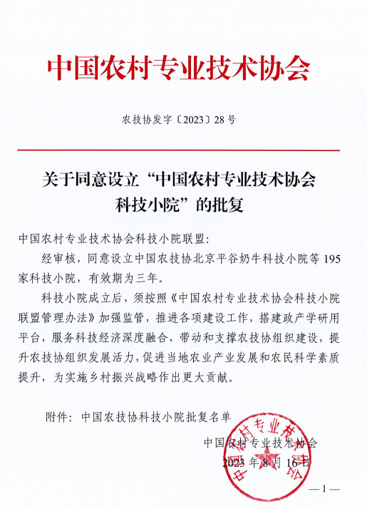 科技小院成立后,公司将按照《中国农村专业技术协会科技小院联盟管理办法》加强监管,推进各项建设工作,主动搭建政产学研用平台,服务科技经济深度融合,带动和支撑农技协组织建设,提升农技协组织发展活力,促进当地农业产业发展和农民科学素质提升,为实施乡村振兴战略做出更大贡献。