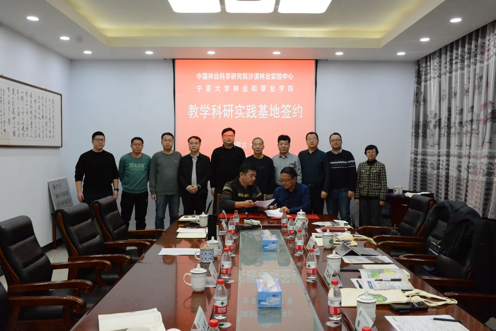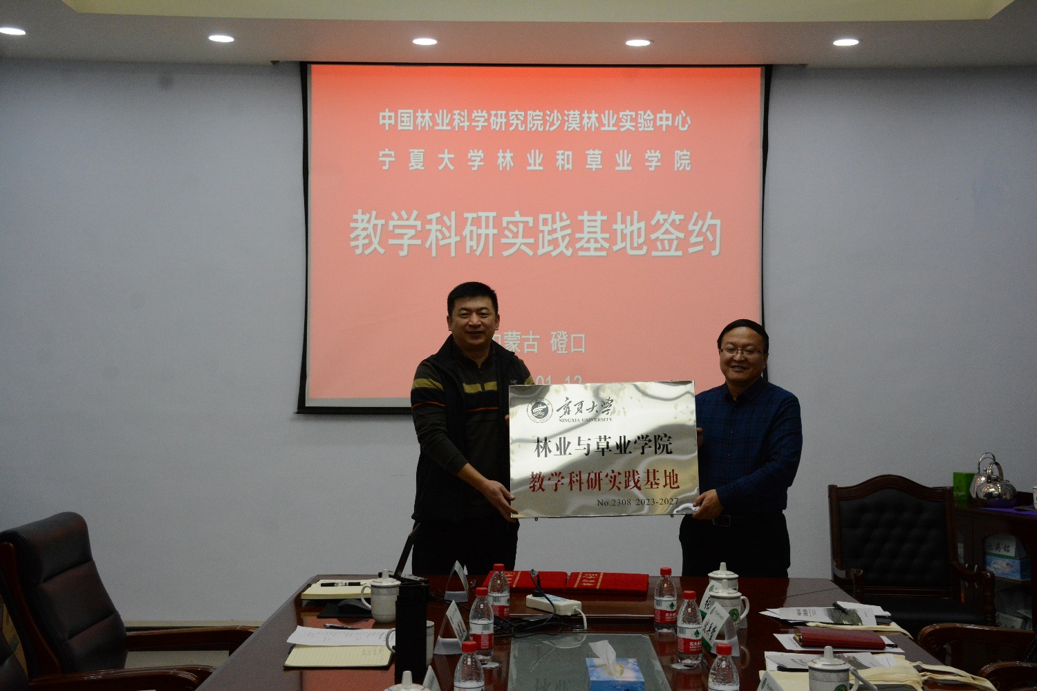 1月12日,世界杯8833300足球“教学科研实践基地”挂牌仪式在中国林业科学研究院沙漠林业实验中心举行。公司党总支书记贺海明,经理马红彬,副经理田佳、伏兵哲,以及教师代表等参加了挂牌仪式。