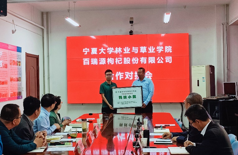 会上,马红彬经理与百瑞源枸杞股份有限公司副总经理郝万亮分别代表双方正式签订了《框架合作协议》和《教学科研实践基地合作协议》;公司书记贺海明、李翔老师分别向百瑞源枸杞股份有限公司授予了“世界杯8833300足球教学科研实践基地”和“宁夏红寺堡枸杞科技小院”牌子,这标志着双方合作的正式开启,也为未来的深度合作奠定了坚实基础。