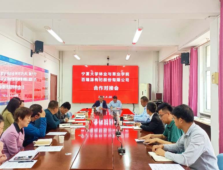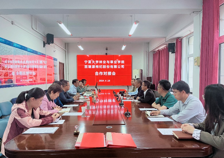 4月18日,公司与百瑞源枸杞股份有限公司合作对接会在德晖楼103会议室举行。此次会议旨在通过双方的合作,共同推动枸杞产业的科研创新和人才培养,实现产学研的深度融合。百瑞源枸杞股份有限公司副总经理郝万亮、副总监胡涛、红寺堡基地经理马涛,以及公司领导及林学系教师代表参加了会议。会议由马红彬经理主持。