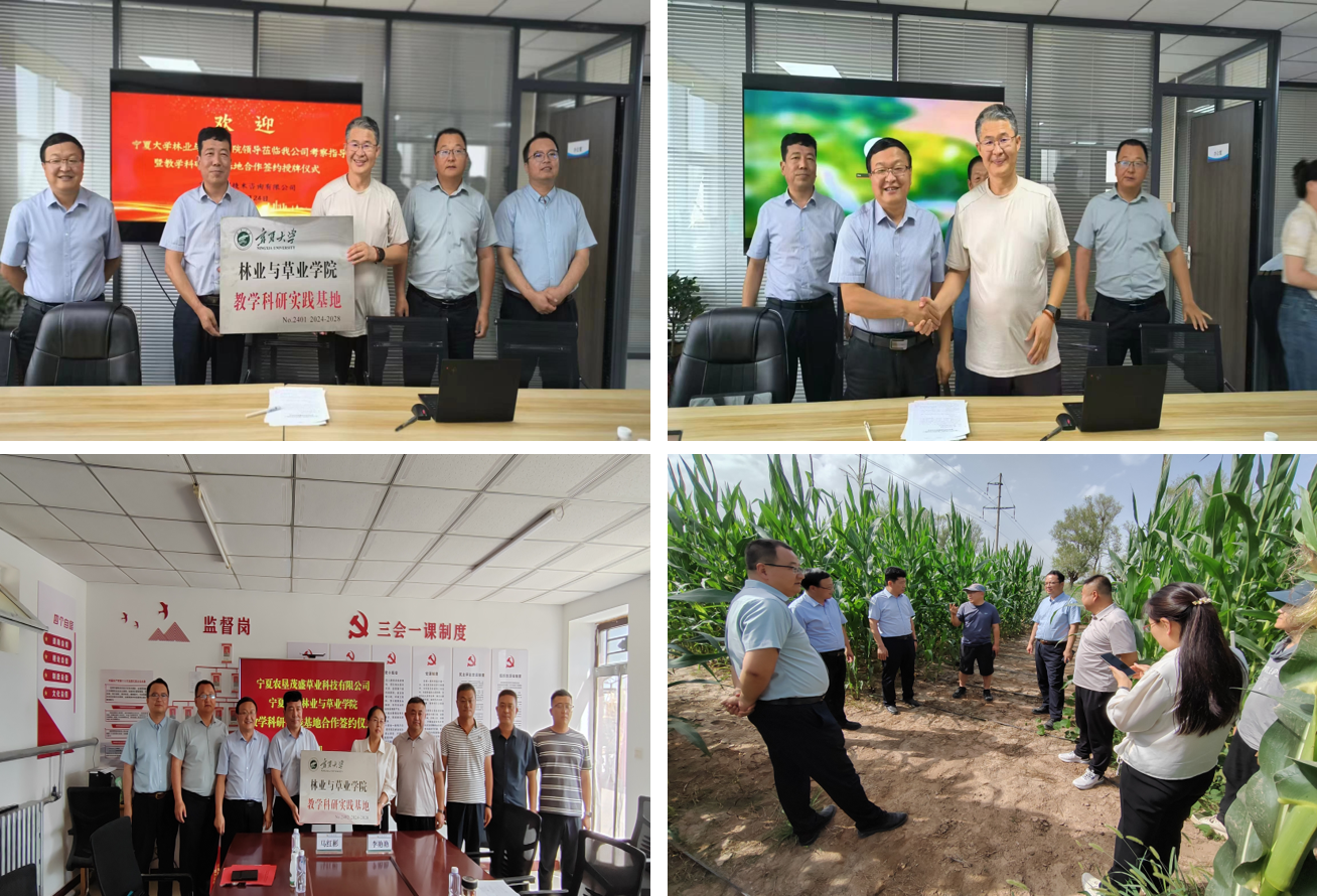工作组一行先后走访了宁夏永明技术咨询有限公司和宁夏农垦茂盛草业科技有限公司,与企业相关负责人进行了座谈交流。工作组详细介绍了公司学科专业设置、团队队伍建设、员工学业情况等,与会双方还在科技研发、技术攻关、人才培养和项目合作等方面作了深入交谈,并举行了战略合作协议签署和“教学科研实践基地”授牌仪式。