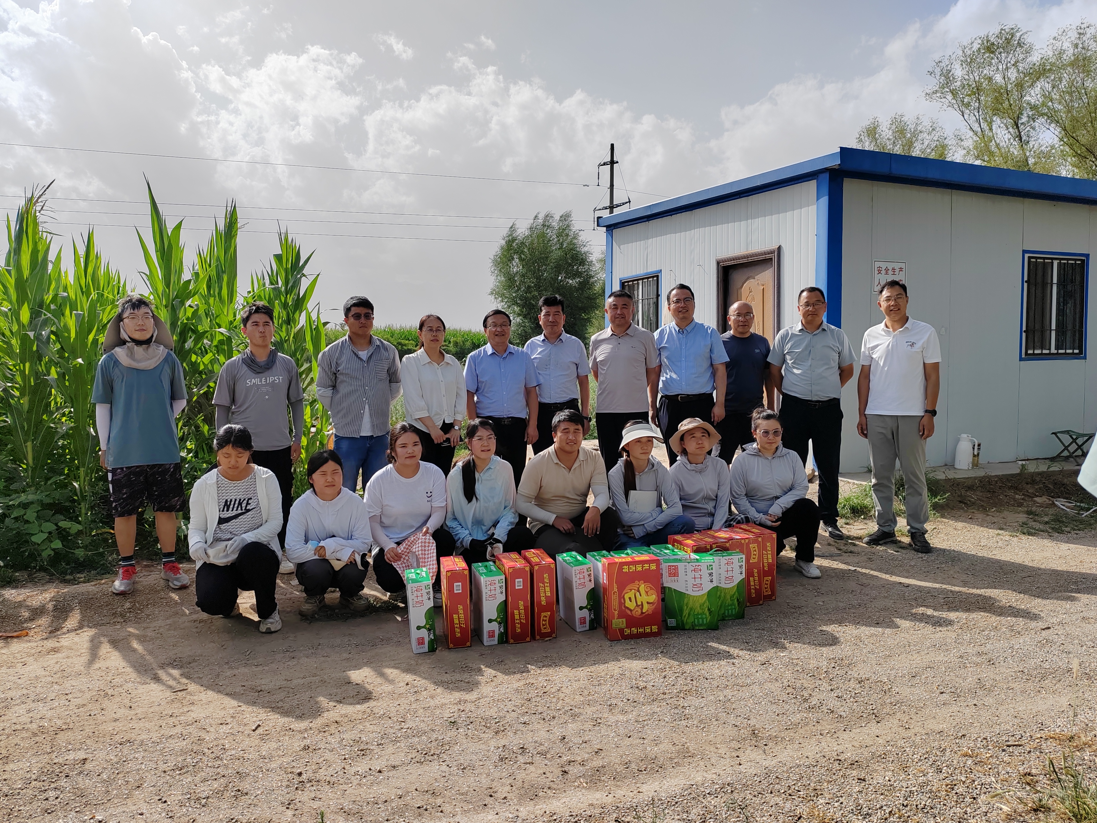 会后,工作组一行赴茂盛草业公司试验生产基地调研,向在试验基地暑期坚守科研一线的师生表示了亲切的慰问。正在带领员工生产实习的兰剑教授向大家介绍了基地建设情况和一些优秀苜蓿品种选育以及玉米-拉巴豆套种减氮科研试验相关经验。