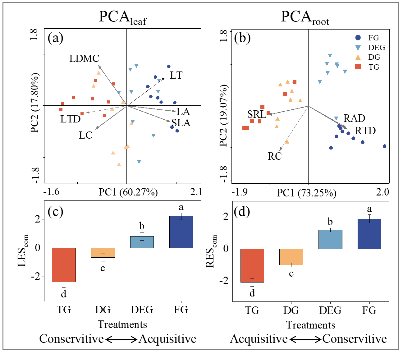 图1 荒漠草原不同放牧时间下群落水平植物叶片和根经济谱